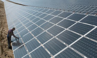 A worker tends to the world's largest solar plant in Germany