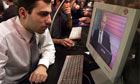 An Internet surfer watches an online interview of Vladimir Putin at an Internet cafe in Moscow. Photograph: Reuters Photograph: Reuters