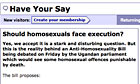 Premoderated posts included one from Chris, Guildford, posted at 8.59am, which attracted 51 recommendations of support. He wrote: "Totally agree. Ought to be imposed in the UK too, asap. Bring back some respectable family values. Why do we have to suffer 'gay pride' festivals? Would I be allowed to organise a 'straight pride' festival? No, thought as much!! If homosexuality is natural, as we are forced to believe, how can they sustain the species? I suggest all gays are put on a remote island somewhere and left for a generation - after which, theoretically there should be none left!"