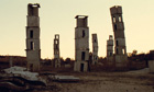 Fiennes's camera tracks slowly around its bunkers and underground passages with their pools of water, shattered urns, piles of broken glass, puzzling numbers on the walls that evoke the tattoos of concentration camp inmates and so on. Her visual style brings to mind the lengthy contemplative shots in Tarkovsky's Stalker, Nostalgia and The Sacrifice, and we think of blitzed cities, battlefields, the death camps, the post-industrial world and the impermanence of civilisation. The film's title is a quotation from the Bible and one inevitably remembers Eliot's line in The Waste Land: "These fragments I have shored against my ruins."