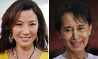 Yeoh was in Burma on Monday to meet Aung San Suu Kyi, spending the afternoon and evening at the lakeside mansion in Rangoon where her subject was held under house arrest for most of the previous 21 years until last month. The pair were also seen chatting yesterday at Rangoon airport, where the actor and Aung San Suu Kyi's younger son were waiting to board planes to leave the country.