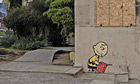 A billboard poster allegedly tagged by the graffiti artist Banksy on Sunset Boulevard in Los AngelesPhotograph: Chris Pizzello/APBanksy Oscar stormtroopers at Mr Brainwash Studio, Los Angeles, CaliforniaPhotograph: Allstar Picture Library/AlamyBanksy rat stencil asking I'm Out Of Bed And Dressed, What More Do You Want? in Los AngelesPhotograph: ArtAngel/AlamyBanksy's version of Charlie Brown on a derelict building in Los Angeles Photograph: Banksy