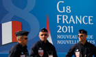 French police outside the G8 summit in Paris, where on Wednesday Nicolas Sarkozy will propose internet controls. Photograph: Yves Herman/REUTERS Photograph: Yves Herman/REUTERS