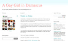 "Almost every time I speak or write to other LGBT [lesbian, gay, bisexual and transgender] people outside the Middle East, they always seem to wonder what it's like to be a lesbian here in Damascus," Amina Abdallah Araf al Omari wrote on 19 February in the opening post of her blog, A Gay Girl in Damascus. "Well, I always find myself answering, it's not as easy as I'd like it to be but it's probably easier than you might think. And that, of course, opens up a whole endless stream of questions …"