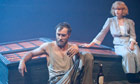 Jude Law lands on deck, flung from the ocean like a helpless fish. He's been on board only a few minutes before Ruth Wilson gives him a knockout punch: it looks so convincing that for a moment it seemed that first-nighters were going to be present at one of those theatrical accidents in which a pretend injury turns into a real-life disaster. Soon an iron bedstead on which Wilson is sprawled is lifted and slammed down as if it were a matchbox, and Law is heaving up Wilson's old sea-dog dad to carry him horizontal and chest-high like an awkward parcel. When the floor of a bar tips to become the deck of a coal barge, it is raked as steeply as a roof.