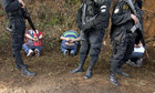 Police stand guard next to suspected members of the Zeta drug cartel. The Anonymous collective has retreated from plans to unmask cartel members. Photograph: Reuters Photograph: Reuters