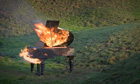 The work is to be called The End of Civilisation, and centres on shots of a grand piano burning in a dip in the fellside. Another screen will show the results of a tracking camera on a scaffolding tower, circling 360 degrees and filming the panorama of the Scottish borders, the line of Hadrian's Wall, Venus dipping into the Solway Firth, Helvellyn and the only three other mountains in England, as well as a closer (smaller) hill called Tarnmonath and the North Pennines.