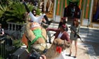The traditional opening day picture: workers unroll the red carpet in front of the Palais des Festivals. It's up these steps that Wes Anderson, Bruce Willis, Tilda Swinton et al will be tripping this evening, for the opening gala screening of Moonrise KingdomPhotograph: Stephane Reix/EPAThe man of the moment: Wes Anderson, relieved no doubt the press screening of Moonrise Kingdom is over, dons a John Travolta suit to face the paparazzi. All that poise is no good, though, if you're facing the wrong wayPhotograph: AFP/Getty ImagesNow here's a real pro. Bruce Willis shows young whippersnappers Jason Schwartzman (left) and Anderson how to give the camera what it wants. One eye slightly closed, laser beam stare … pricelessPhotograph: Pascal Le Segretain/Getty ImagesTilda Swinton succeeds where Anderson failed, and lets the photographers get a decent shotPhotograph: Pascal Le Segretain/Getty ImagesAre these two angling for the Sunshine Boys remake? Willis looks dapper, but Bill Murray is going full-bore Florida retiree in that jacketPhotograph: Yves Herman/ReutersMoonrise Kingdom's two young stars, Kara Hayward and Jared Gilman – looking understandably excited by it all – stand between director Anderson and, on the right, co-writer Roman CoppolaPhotograph: Pascal Le Segretain/Getty ImagesHere's Edward Norton, on his own. Maybe he got into a row over artistic control and found himself locked out of the press room? Or simply hasn't got any friends?Photograph: Venturelli/WireImageYou show me yours, I'll show you mine … Bill Murray whips out a teeny-tiny camera to show the paparazzi what's whatPhotograph: Pascal Le Segretain/Getty ImagesA slightly quieter affair: the distingished members of the jury face the photographers. On the left is fashion designer Jean-Paul Gautier, on the right is Ewan McGregor; between them is Diane Kruger. She's clearly got a sixth sense for camerasPhotograph: Dave J Hogan/Getty ImagesJury president Nanni Moretti, director of Dear Diary and The Son's Room, demonstrates some of that ice-cool Italian attitude. Pity hardly anyone is there to noticePhotograph: Anne-Christine Poujoulat/AFP/Getty ImagesIs this the longest promotional tour in history? Sacha Baron Cohen has been keeping The Dictator going since the Oscars, some four months ago. Here he is 'noticed' with one of his submachine-gun-toting henchmen aboard a fancy yacht up at the Hotel du Cap, Cannes' refuge for the super richPhotograph: Gareth Cattermole/Getty ImagesAnd what's this? Dictator and henchman appear to be throwing a body in the water. Surely not?Photograph: Gareth Cattermole/Getty ImagesBack on dry land, Baron Cohen grapples with a camel – but it's not so easy as it looks, and he nearly comes a cropperPhotograph: Dave J Hogan/Getty ImagesApropos of nothing, that's Eva Herzigova over there, standing on the roof of the Martinez Hotel. Well, what would Cannes be without a few random shots of beautiful people? Nothing and nowhere, that's for surePhotograph: Danny Martindale/FilmMagic