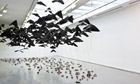 Colours of mourning ... Arturo Hernández Alcázar has hung 250 sooty kites from the ceiling. Photograph: Pierre Antoine Photograph: Pierre Antoine/PR