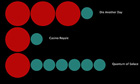 Dawes' graphic uses the same coloured circles to represent Bond's body count. Each red circle represents ten kills, and each blue-green circle a single death.