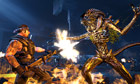 What's galling is that it all sits atop a substandard shooter. Tactical play amounts to firing as many bullets at bad things as possible, which never feels like a challenge given the amount of ammunition available. Worse, human enemies seem little smarter than their mindless alien counterparts, while dodgy textures and glitchy physics abound.