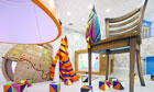 The result of a RIBA competition, the scheme was developed in close consultation with medical staff, physiotherapists and teachers – who requested a series of intimate, enclosed areas as well as the open-plan room, to allow for patients' different needs. You can actually climb inside the TV (surely the ambition of every child), where a cosy cave-like space awaits. Another secluded area can be found inside the globe. Each space is large enough to accommodate the turning circle of a hospital bed.
