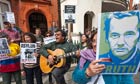 Julian Assange's supporters outside the Ecuadorean embassy one year on from the WikiLeaks whistleblower taking refuge there. Photo: Peter Marshall/Demotix/Corbis Photograph: Peter Marshall/Demotix/Corbis