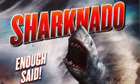 In case the title left anything to doubt, a quick summary of the film: a tornado spews sharks into Los Angeles. One lands in Tara Reid's pool, another bounces off a barstool. Helicopters throw bombs at the weather. A character named 'Fin', played by a Chippendales dancer, leaps into the open jaws of a projectile Great White and chainsaws his way out of its rubber belly, screaming. The tagline reads: "Enough said".