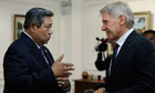 Harrison Ford, right, with the Indonesian president, Susilo Bambang Yudhoyono, in Jakarta. Photograph: Abror Rizki/AFP/Getty Images Photograph: Abror Rizki/AFP/Getty Images