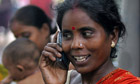 Tulsi Prasad, an Indian slum dweller, makes a call in Kolkata, east India. Boosting technology access requires public-private partnerships, Jeffrey Sachs says. Photograph: Jayanta Shaw/Reuters Photograph: Jayanta Shaw/Reuters