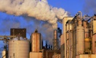 A factory emits smoke and steam on a cold winter day