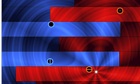 In Smesport, two teams battle it out to control the screen, which is divided into seven lanes. At first, each lane is half red, half blue, but if a player moves their circular avatar to the very end of their own coloured section of a lane, they push that colour toward the opponent's end. When a lane is totally filled with one colour, it's a 'goal' – three goals and you win.