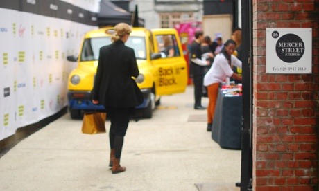 A woman heads towards a Hailo cab at Social Media Week London. Photograph: Chinwag/flickr Photograph: Chinwag/flickr