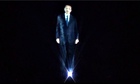 That's a bit rich coming from a giant hologram. Is he the first person in history to do this weird thing? He's not even the first politician. During his 2012 campaign for reelection, Gujarat's chief minister, Narendra Modi, beamed his speechifying avatar to 53 different sites simultaneously, earning himself a mention in the Guinness Book of World Records.