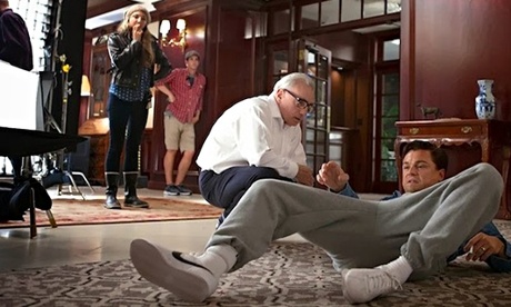 The behaviour in The Wolf of Wall Street’s infamous Quaalude scene may be reprehensible, but you can’t fault the sportswear. With crisp white Nike trainers, oversized grey marl sweatpants and a denim shirt open over a white tee, Jordan Belfort (Leonardo DiCaprio, seen here with director Martin Scorsese) is at once 1990s and very 2014. The rest of the scene? Not such a good look. Photograph: Internet