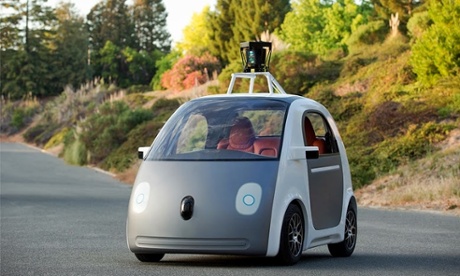 Google's first purpose-built self-driving car has arrived. The dinky two-seater looks like a cross between a Smart Car and a Nissan Micra, has no steering wheel, accelerator or brakes, and just two physical controls: "stop" and "go".