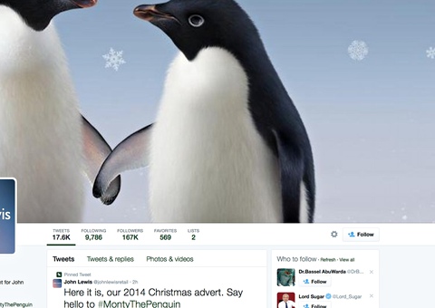 Thursday is a big day for retailer @johnlewisretail as the debut of its 2014 Christmas TV ad goes ballistic in the Twittersphere. Penguins, anyone? In a few hours there may be a sense of deja vu for the Virginian with the @johnlewis Twitter handle, when he wakes up and finds himself inundated with references to #montythepenguin. With 6,849 followers, the “social liberal and atheist” is already pretty popular, and given John Lewis’s marketing director Craig Inglis follows him it looks like he’s done pretty well out of the association. At the very least he’s maintained a sense of humour about the whole thing, ending his Twitter profile with the statement “not a retail store”.
