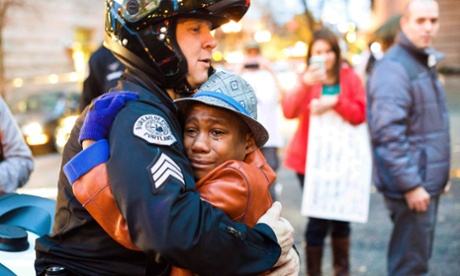 It shows 12-year-old protester Devonte Hart sobbing as he hugs a white police officer. The officer’s face too is tenderly emotional. The cop appears to be comforting the boy. After all the anger, all the divisions, here is a moment of human reconciliation.