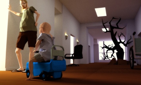 It is traumatic. Having shown off That Dragon, Cancer at various games events over the last two years, Ryan and his team are used to players bursting into tears. But what is brilliant about it (beyond the simple visuals, which leave Joel’s face blank so that it can be mentally mapped with another face, perhaps that of your own child) is the way it subverts gaming expectations. It looks like an adventure game, a puzzle you have to solve, but as the scene plays out, you realise that, like Ryan, you are trapped here. There is no solution. At one point, the viewpoint – which had been showing the room as if through Ryan’s own eyes – moves outside the window and looks back in on the scene. Suddenly, you are separated from Ryan’s anguish by a pane of glass. It is a merciful release.