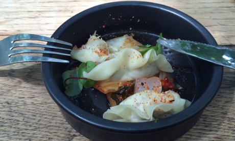 Nobody loves me, everybody hates me? Try some mealworm dumplings with kimchi and nate de coco. I’m not a huge fan of kimchi, but this was a lot more enjoyable than I’d expected it to be. Photograph: Tash Reith-Banks